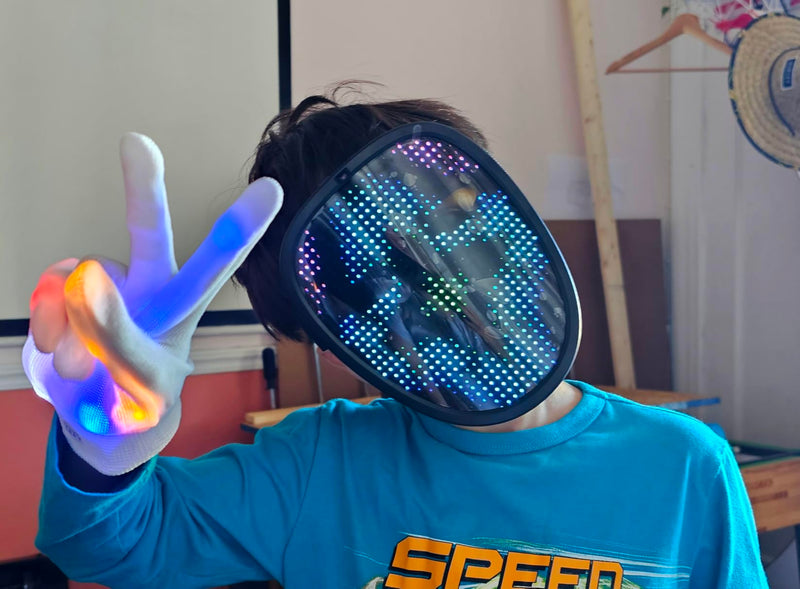 The mask features built-in gesture sensing technology that allows you to change light patterns by simply waving your hand in front of the mask. It's easy and fun to use!