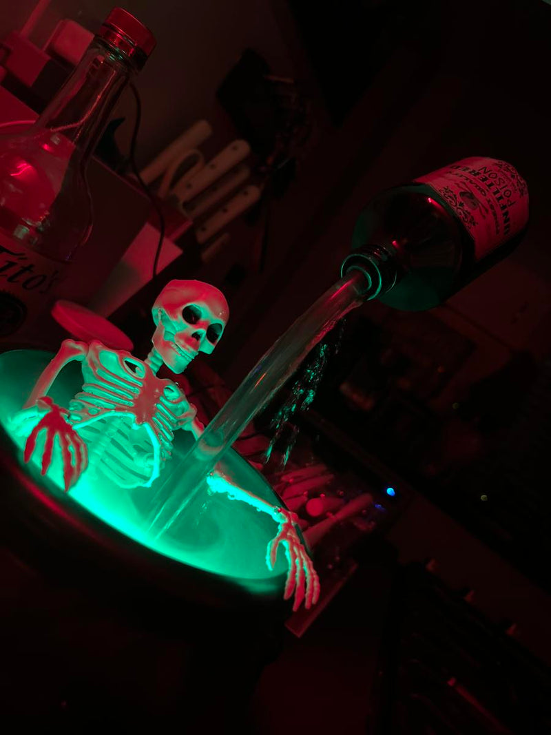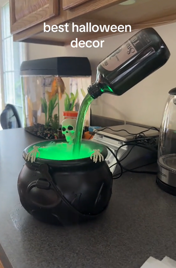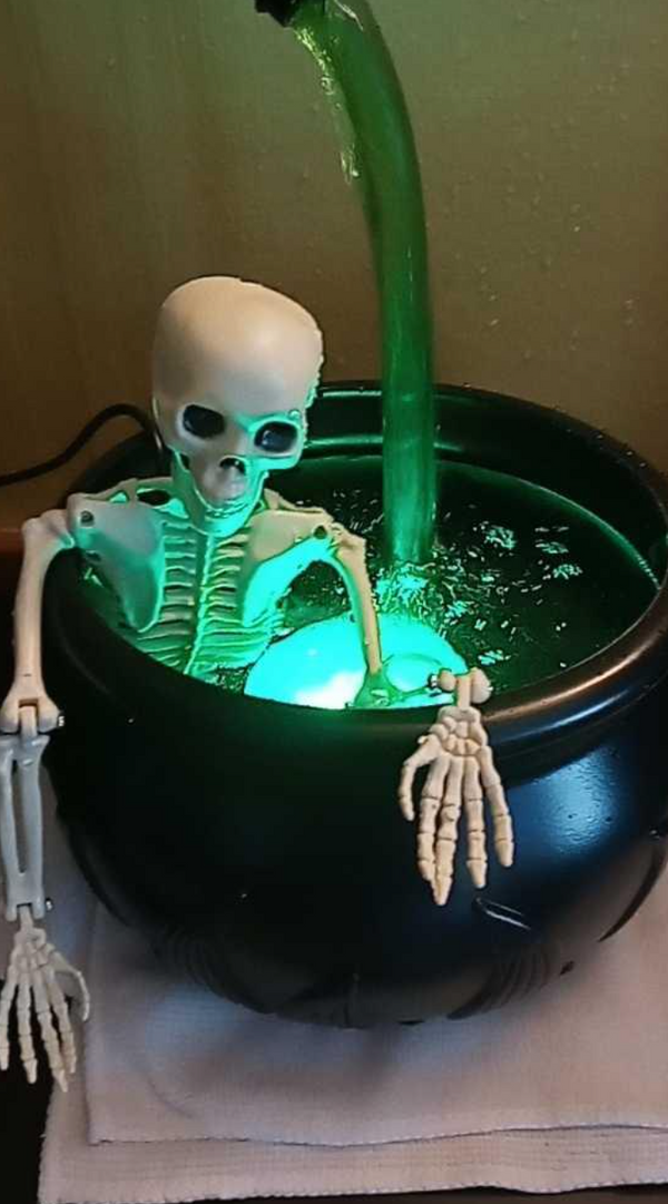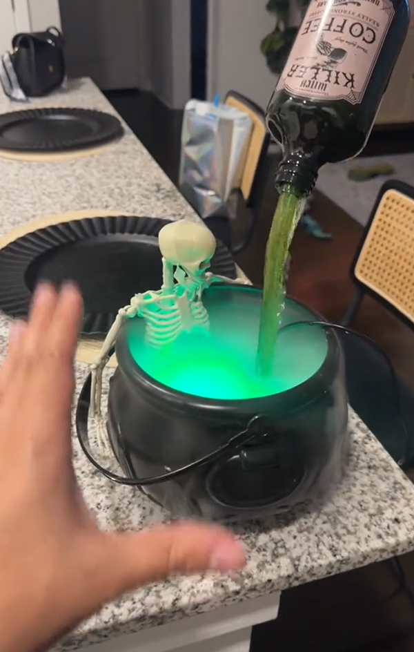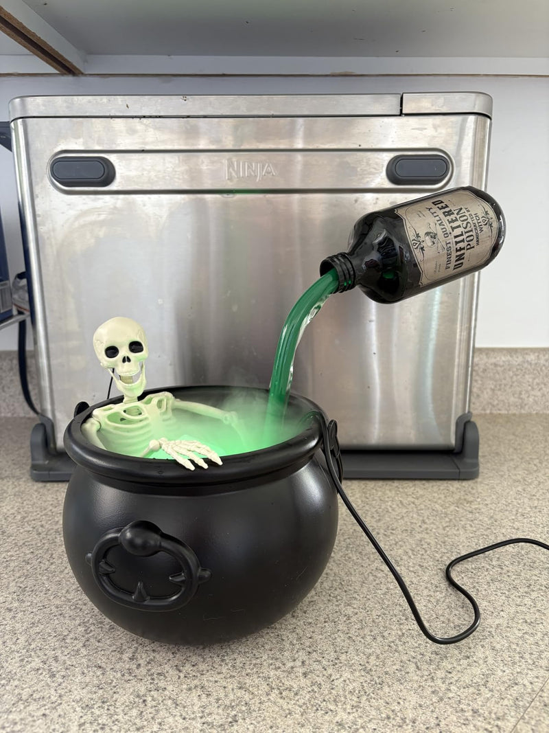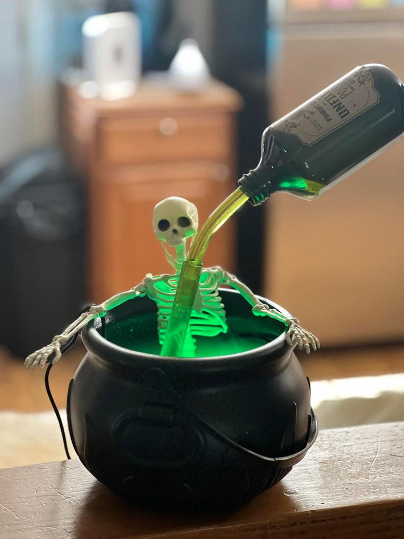 Not just a cauldron, but a creepy skeleton that pours a glowing potion and adds a chilling vibe to any room.
